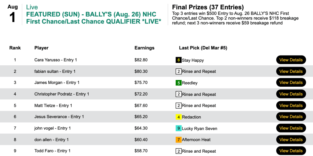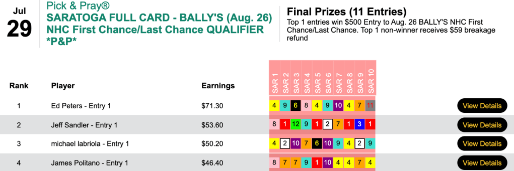 As for the Sunday Bally’s qualifiers, the multi-track version rewarded three players with $500 entries.
