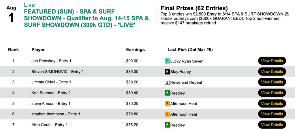Back here at HorsePlayers, Scott McFaden led a group of three winners in Friday’s Spa & Surf Showdown qualifier.