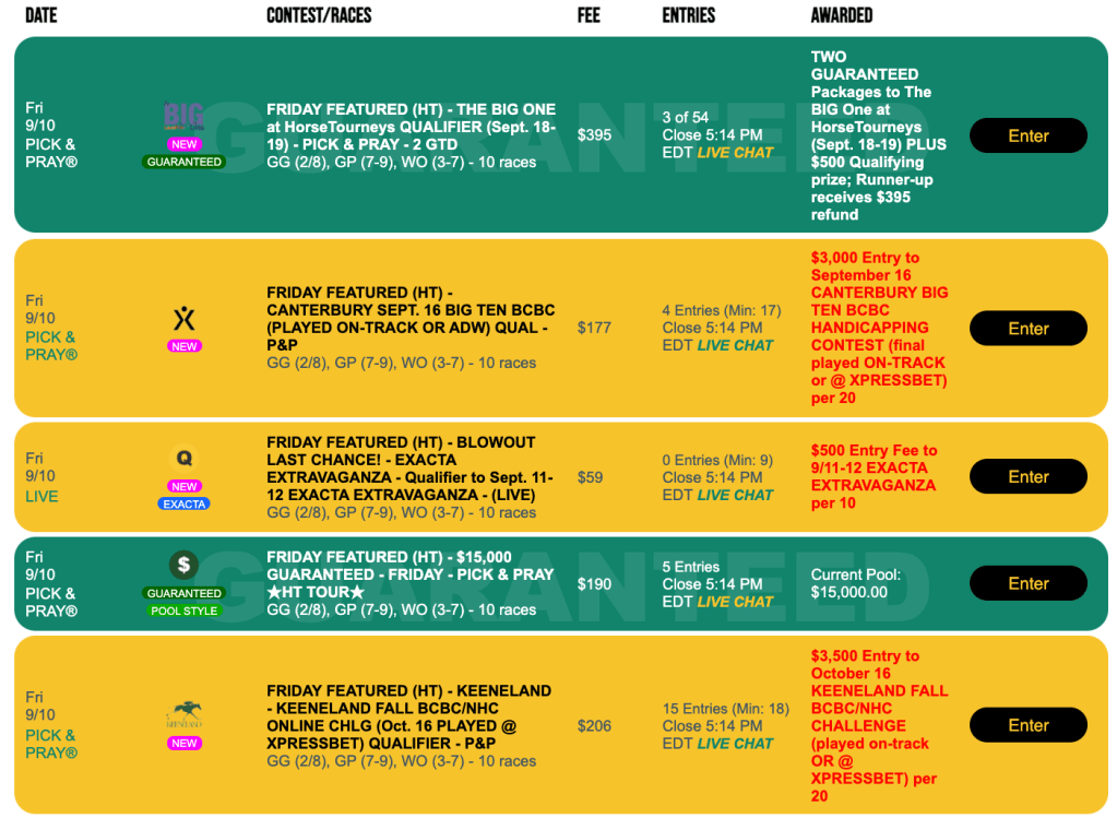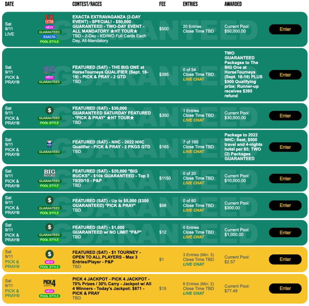 Adding to the accent on quality this Saturday is our NHC qualifier here at HorseTourneys. It’s a $165 Pick & Pray with two spots to next January’s event guaranteed.