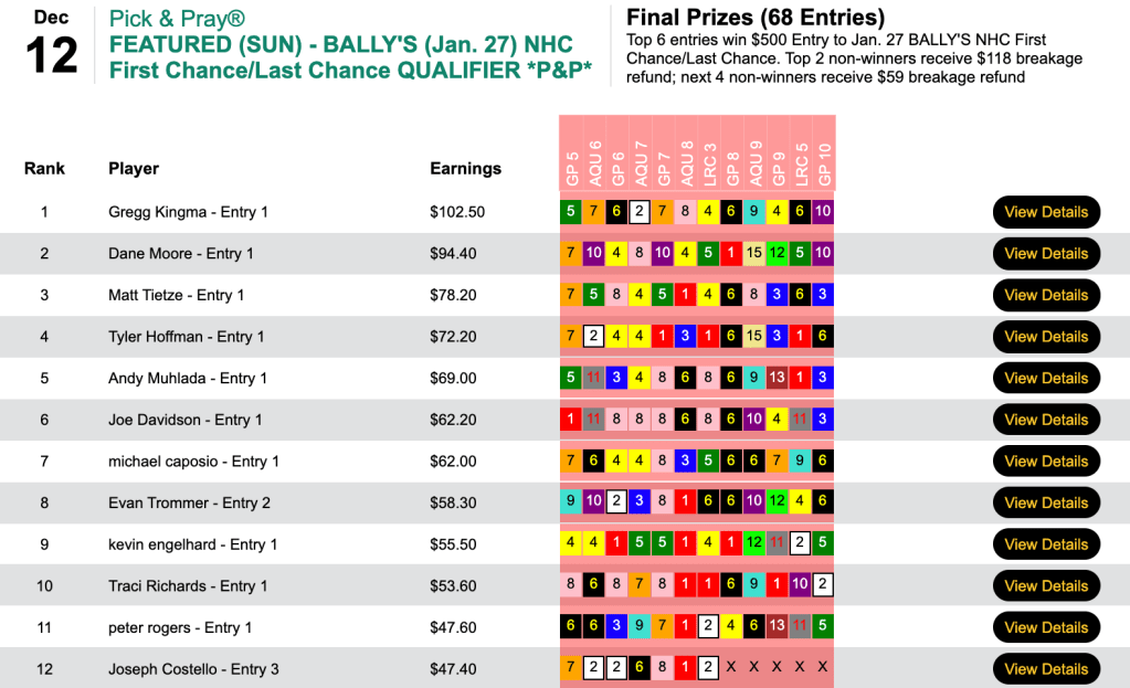 We’re not saying it will happen, but should Arrison do poorly in the Bally’s NHC Last Chance tournament, he needn’t fret too much…because thanks to his big day this past Saturday, he’ll definitely be in the NHC, itself.