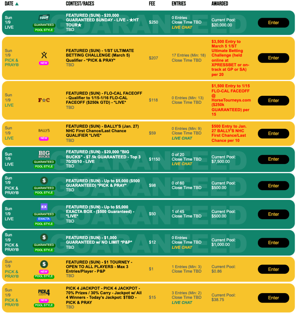 Even some of those playing onsite at Tampa Bay Downs on Saturday may want to pay attention to what’s going on here at HorseTourneys that day…because we have four Live-format and two Pick & Pray features slated that day.