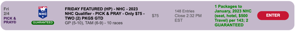 Over at HorsePlayers on Friday, you can play our very first qualifier to the 2023 NHC.