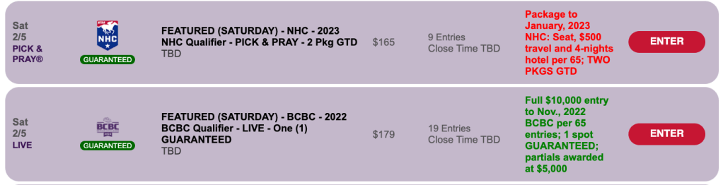 The NHC qualifier is a $165 Pick & Pray with two spots guaranteed and a winning ratio of 1-per-65.