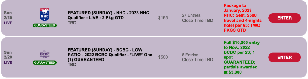 The NHC game is a “regular,” Live-format qualifier with an entry fee of $165, a winning ratio of 1-in-65 and two seats to the 2023 renewal guaranteed.