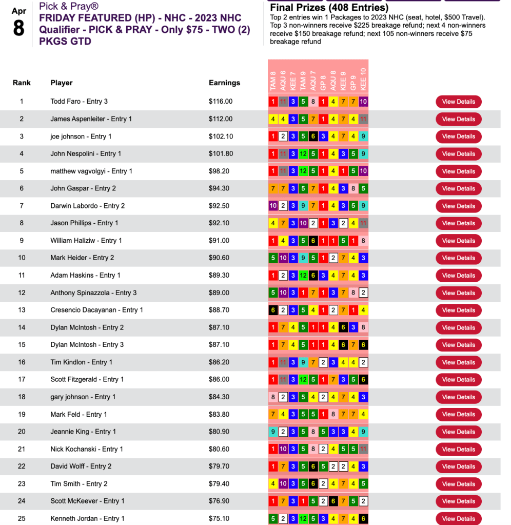 Over at HorsePlayers, the two highest scores on Friday got Todd Faro and James Aspenleiter seats to the 2023 NHC.