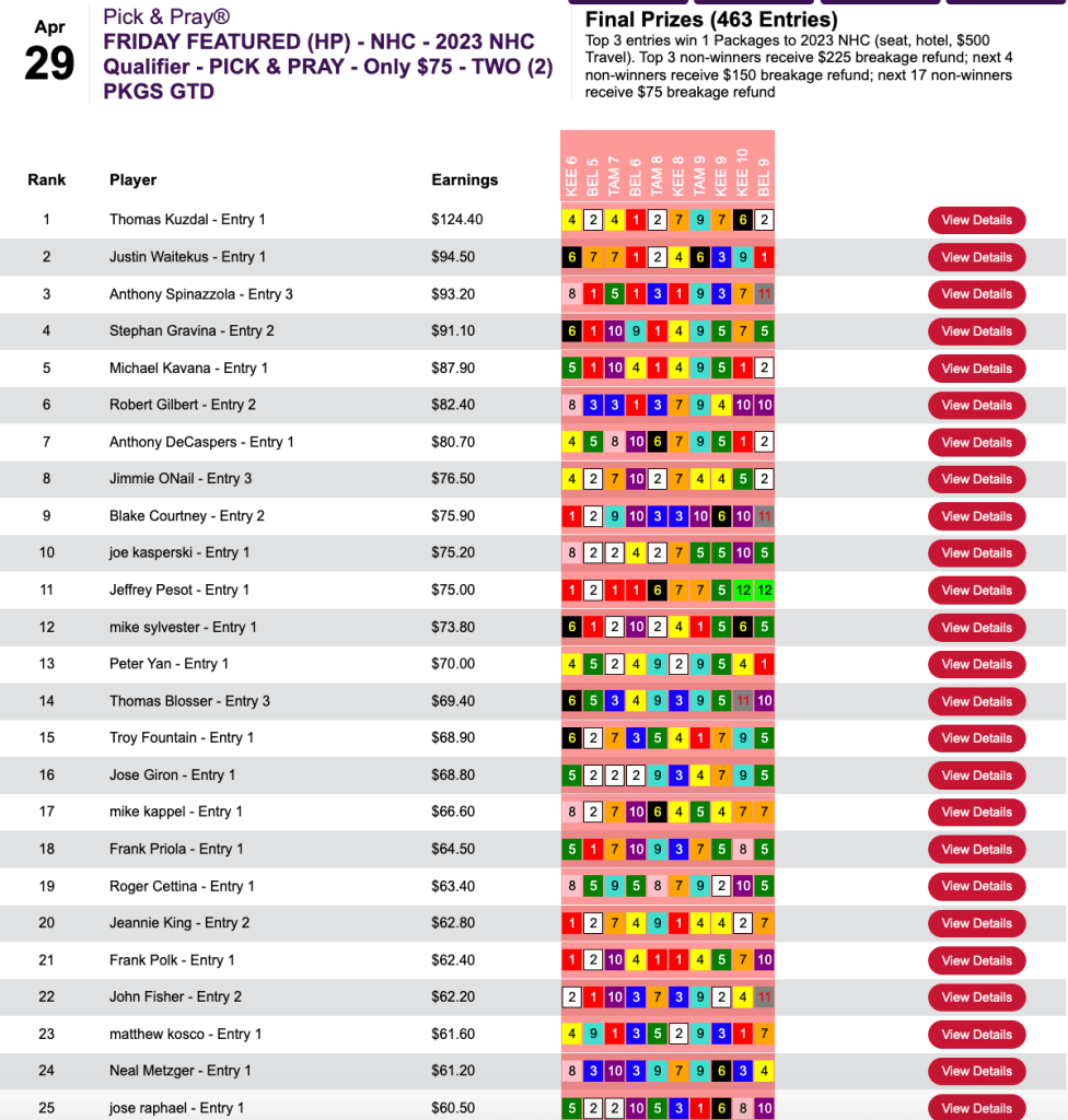 Kuzdal’s three winners were the three highest out there on Friday, and they booked him passage to the 2023 NHC.