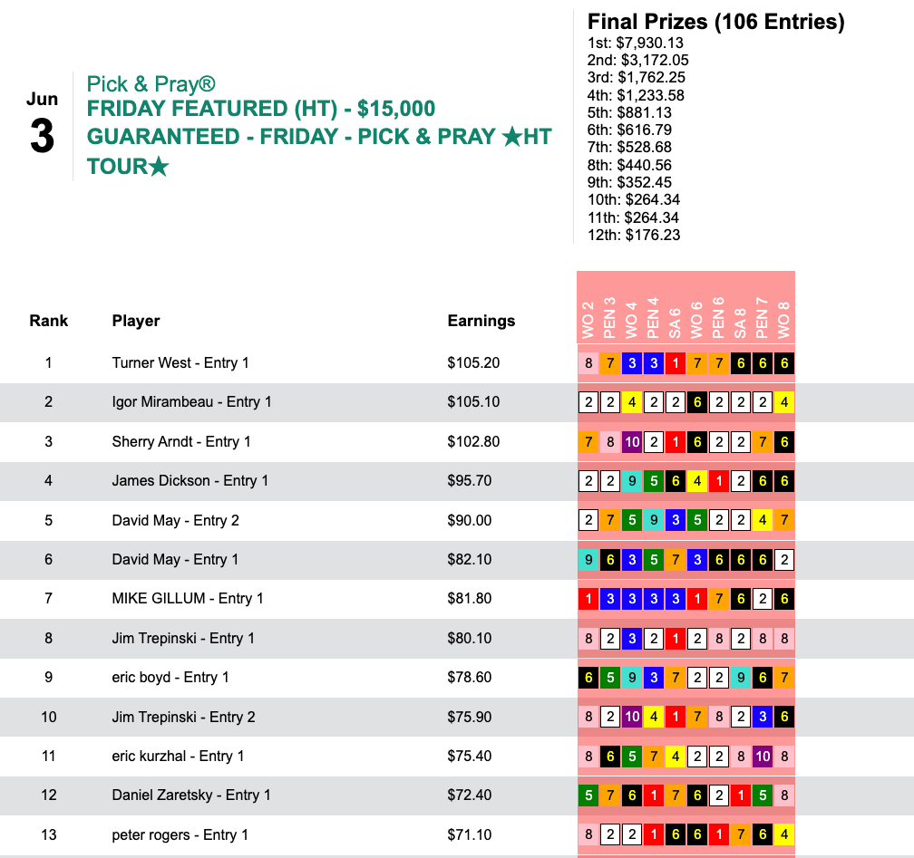 Turner West won Friday’s HT Tour event, our $15,000 Guaranteed Pick & Pray despite not having Wow Whata Summer. That’s surprising on one level.