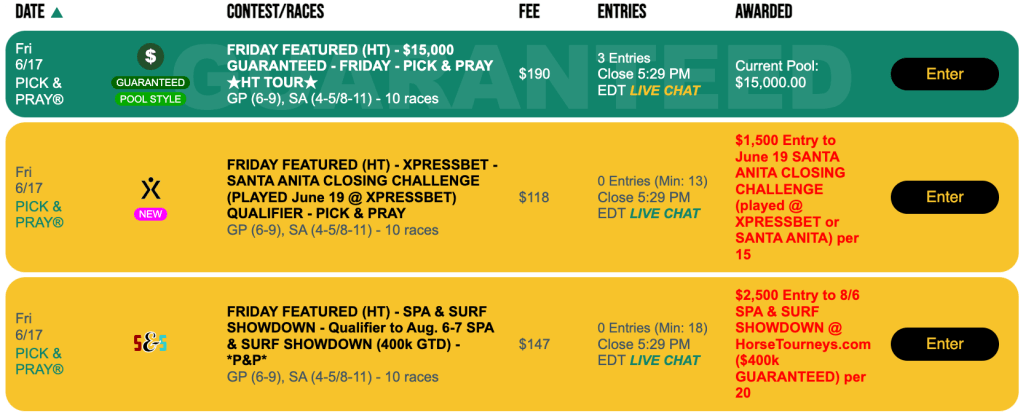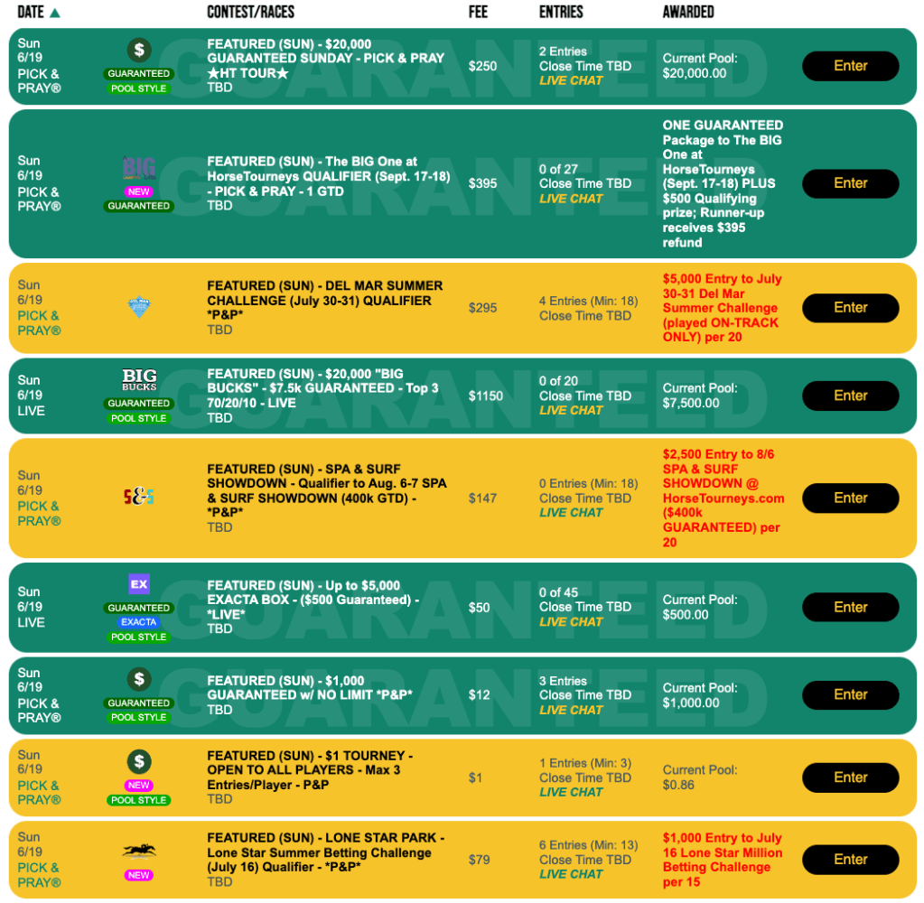 Also on tap this Sunday is a Pick & Pray play-in to the Lone Star Summer Betting Challenge, which takes place on July 16 at the suburban Dallas racetrack. The entry fee for this one is $79, and one of every 15 entrants will take home a $1,000 entry.