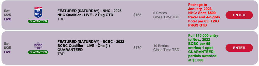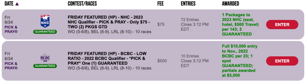 There will a qualifier each day of the weekend for the Spa & Surf Showdown. Friday’s version is a $147 Pick & Pray, with one of every 20 entrants getting a $2,500 seat at the table of the two-day, $400,000 Guaranteed, final leg of the 2022 Tourney Triple here on August 6-7 (Whitney weekend at Saratoga).
