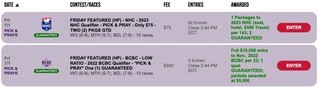 How many NHC berths are we guaranteeing on the Fourth? Four! They’re available in a special $100 Pick & Pray at HorsePlayers on Monday.