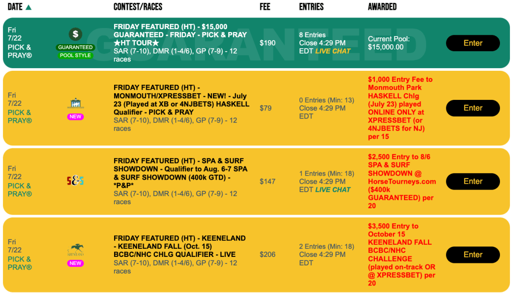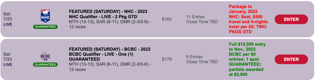 The Sunday opportunity to qualify for the 2023 NHC takes place right here at HorseTourneys this week. It’s a $165 Pick & Pray with at least two spots assured regardless of participation