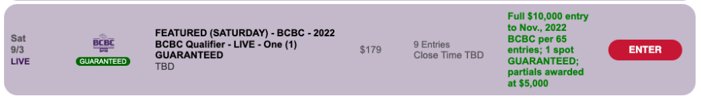 The BCBC game is a $500 Low Ratio qualifier. The winning ratio is 1-per-23, and at least one $10,000 entry will awarded no matter what.