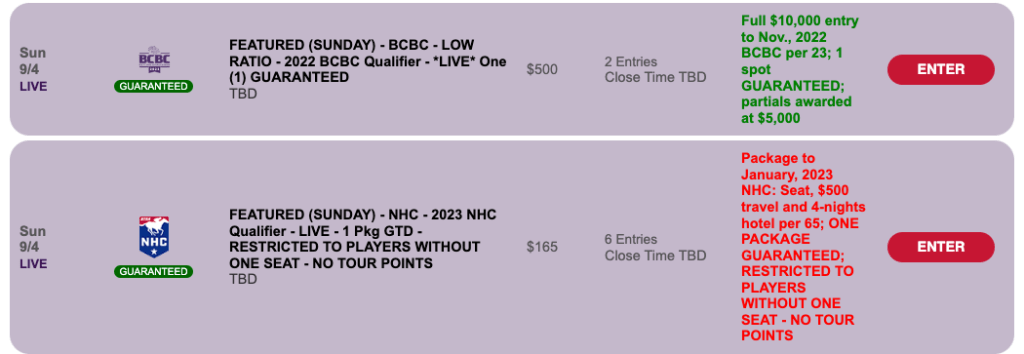 The NHC qualifier is restricted to those who have yet to earn a 2023 seat. As such, no NHC Tour points will be awarded in this one. The entry fee is $165, and the winning ratio is 1-per-65.