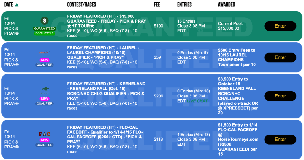 At HorsePlayers on Friday, there will be Pick & Pray qualifiers to both the NHC and the soon-to-be-upon-us Breeders’ Cup Betting Challenge.