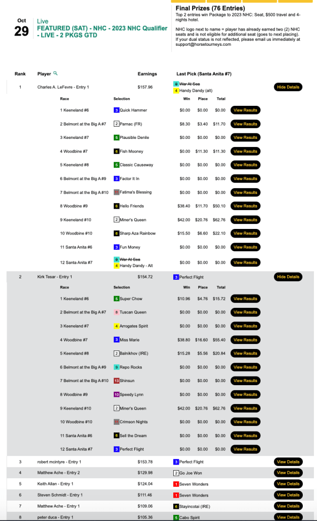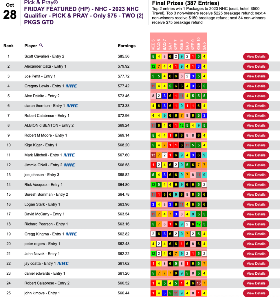 They ran one-two in Friday’s $75 NHC qualifier at HorsePlayers and each took home 2023 seats.