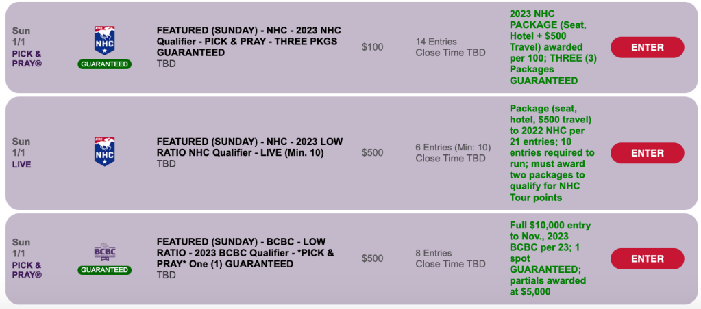 One of the NHC play-ins is a $100 qualifier with three seats guaranteed rather than the usual two. It’s a Pick & Pray with a winning ratio of 1-per-100.
