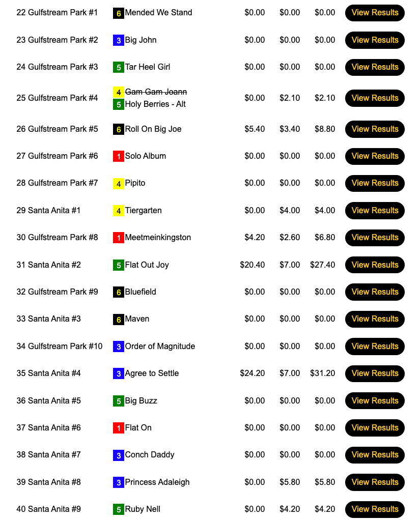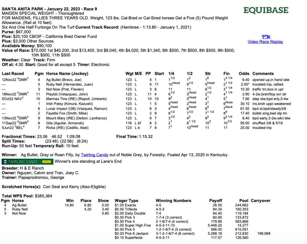 Also a difference maker was the odds drop on Ag Bullet. Had she gotten hit to even 8-1 instead of 6-1, Michael Somich likely would have been the winner.