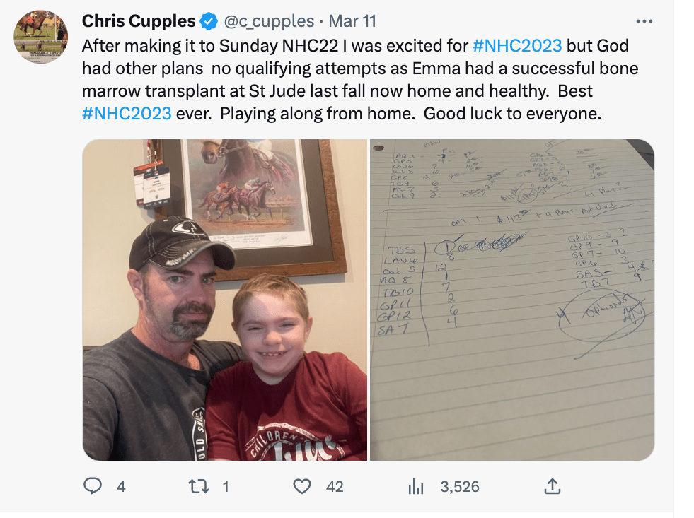 Shortly after sending out that tweet, Cupples entered Saturday’s Keeneland Grade One Gamble qualifier and came in 2nd to earn a spot along with first-place finisher Eric Liebmann.