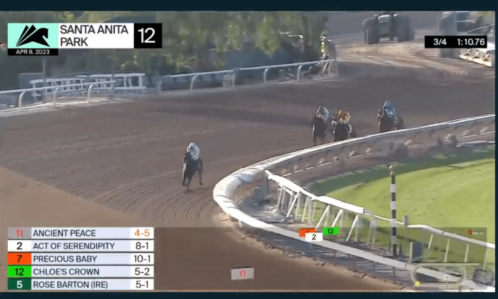 Chloe’s Crown got up late for second, but well behind Ancient Peace. Van Zandt had completed a miraculous comeback and took home the winner’s share of $153,090.
