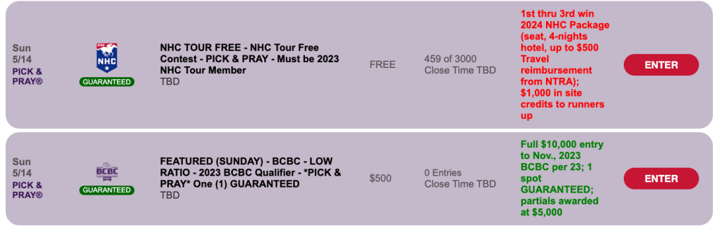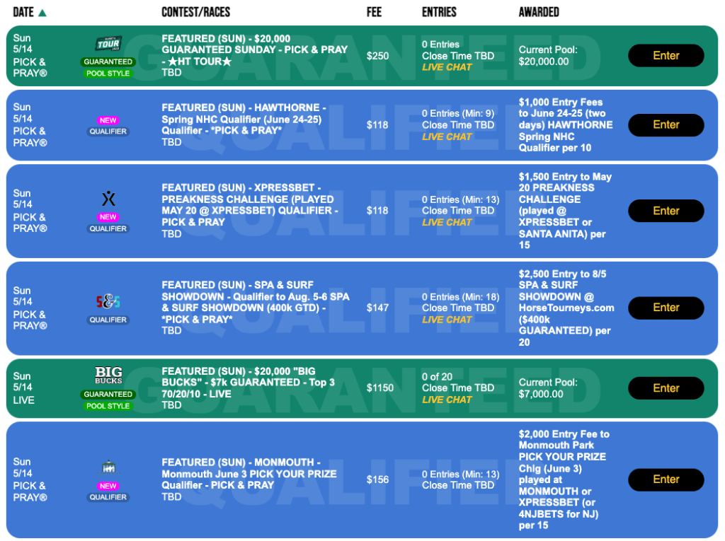 On Sunday, all of our marquee games, with the exception of the Big Bucks tourney, will be Pick & Prays, in deference to it being Mother’s Day. We lead our Sunday preview with HorsePlayers—since that’s where the free NHC qualifier will be hosted.