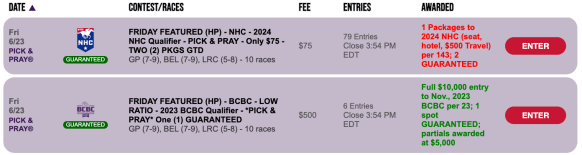 The new Saratoga Challenge qualifier is a 1-per-15 Pick & Pray on Friday that carries an entry fee of $79. What’s better than a day at Saratoga? A day at Saratoga with contest action.