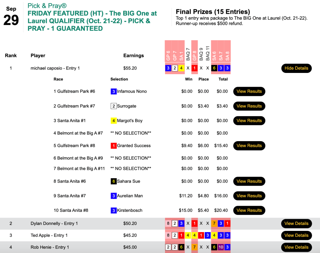 With 3 winners and 1 runner up from 7 races on Friday, The BIG One alum Michael Caposio earned a return trip to Laurel for the 2023 renewal.