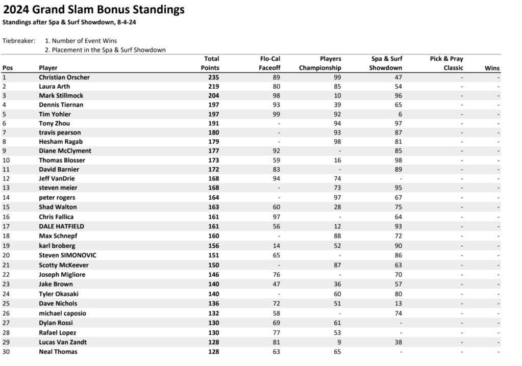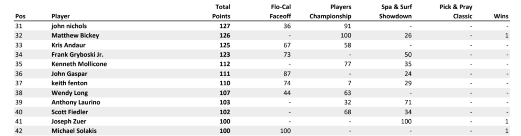 Christian Orscher’s work is far from done. In fact, If you are one of the 38 players with 107 or more points, you may want to give extra consideration to playing this weekend, because a high finish could move you straight into the top three.