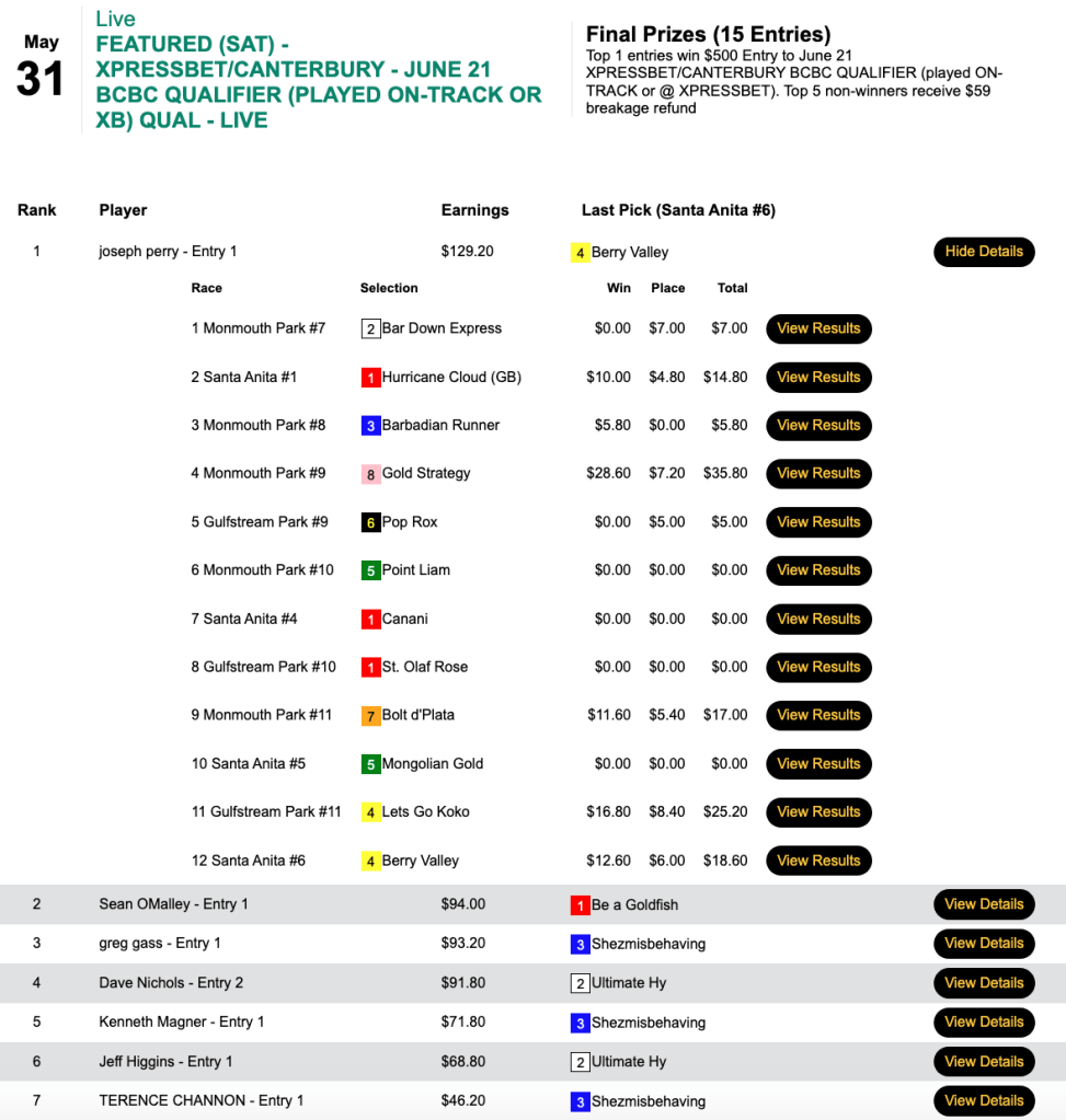 Mercifully, there was less drama in Sunday’s BCBC qualifier—a low ratio get-together at HorsePlayers.