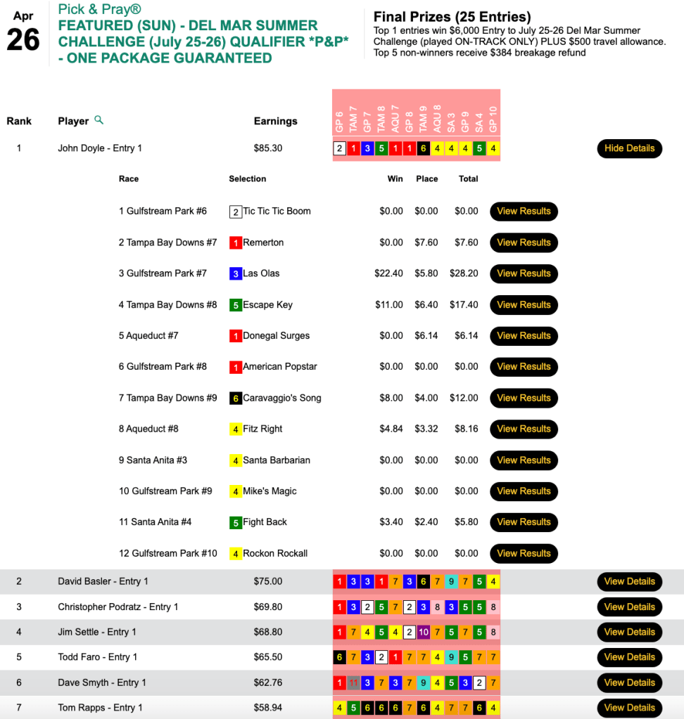 On Sunday, we offered our first qualifier to the July 25-26 Del Mar Summer Challenge.