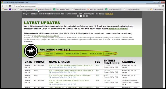 Players may use site credit at HorseTourneys to purchase entries directly to certain contests.