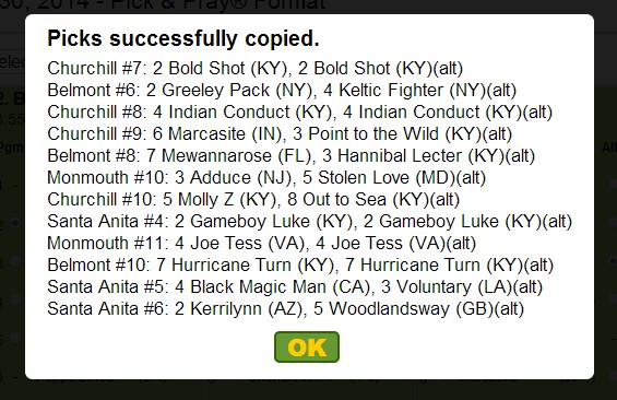 (3) You MAY copy selections from entries that include races that have already closed. If you do this, picks will only copy for the races that are still OPEN (only relevant in the Live format).